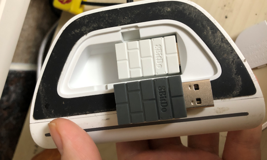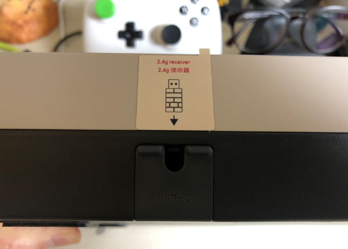 아케이드 스틱 앞쪽에 무선 리스버와 USB C타입 케이블을 연결할 수 있는 공간이 있어요.